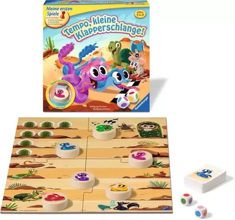 Eine Neuentwicklung von den Wolfgang Dirscherl und Wolfgang Lehmann, farbenfroh umgesetzt von Ravensburger und Manuel Kilger. Tempo, kleine Klapperschlange! erscheint auf der Spielwarenmesse Nürnberg im Februar 2023.